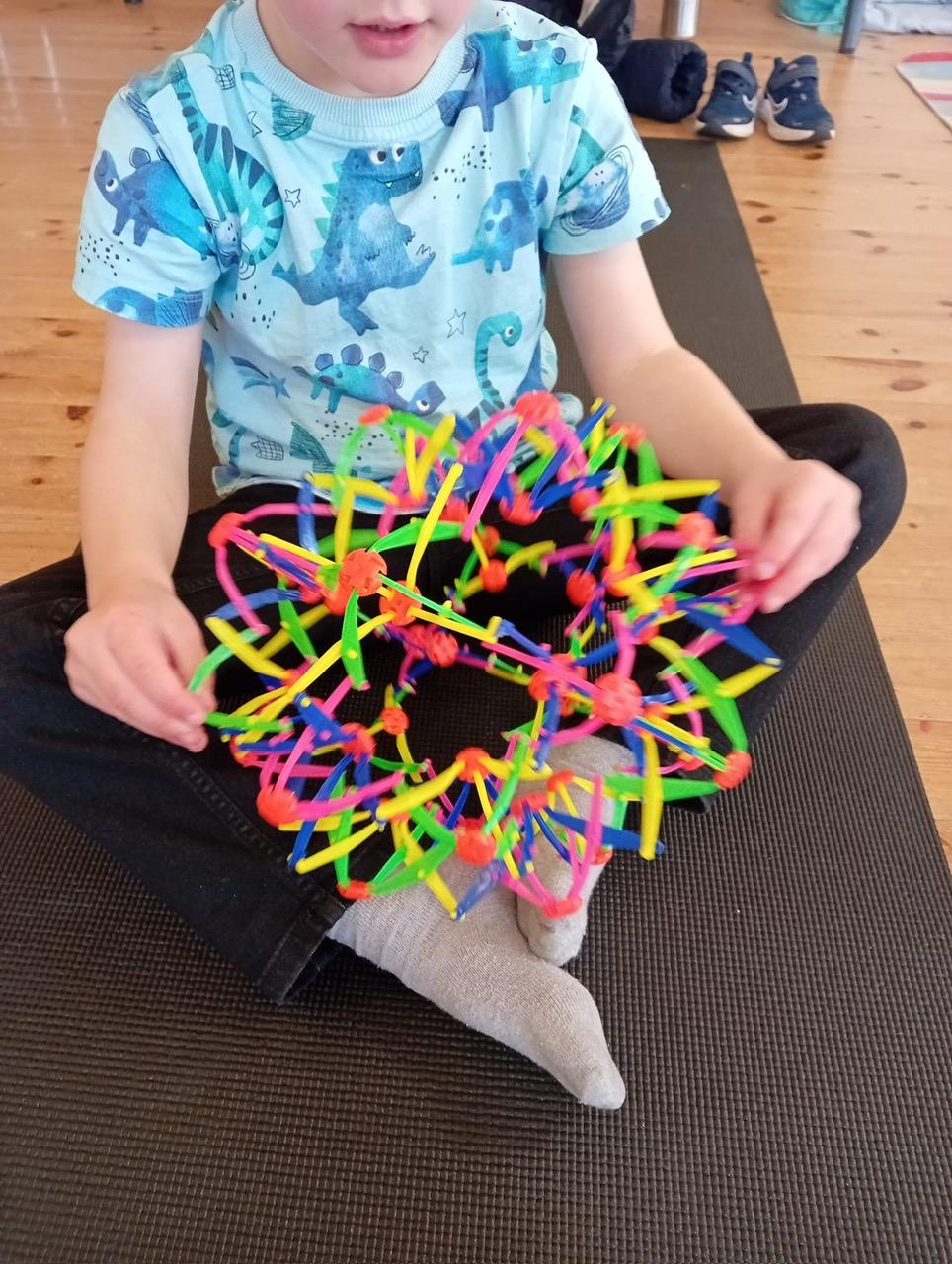 We begin with gentle warm-ups and movement activities that support the development of gross motor skills, including balance, focus and core strength. This opening part of the class also gives children time to settle into the environment, with access to fidgets, colouring sheets and space to chat and connect before the main session begins.